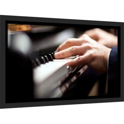 L’écran de projection sur cadre CANALETTO est le plus récent des écrans de conception en aluminium développé avec un nouveau design. Ce produit est une combinaison innovante unique d’une finition en velours et un cadre d’aluminium noir.